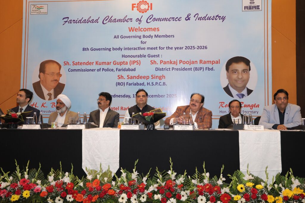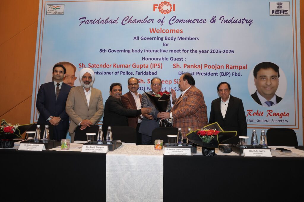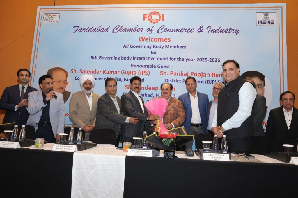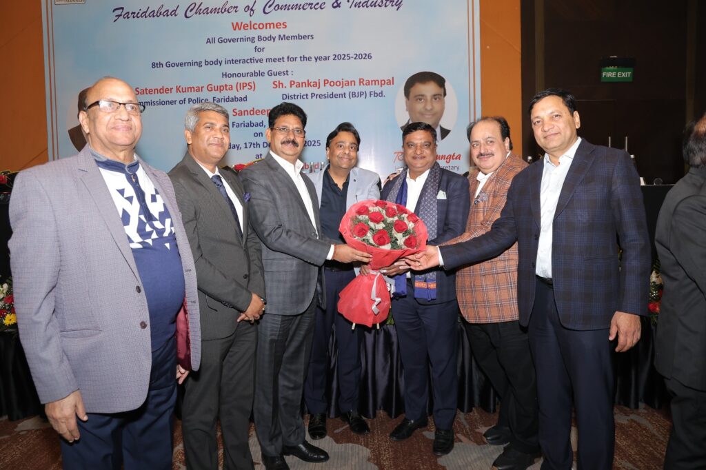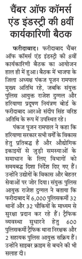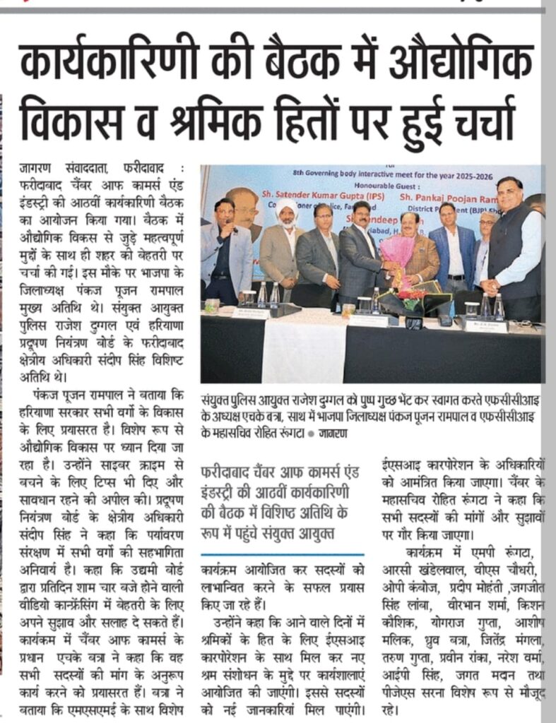 Read More FCCI’s 8th Governing Body Meet focuses on law & order, cyber safety, traffic and pollution control फरीदाबाद पुलिस सबसे तेज, 6.32 मिनट में पहुंच जाती है डायल 112 पीसीआर फरीदाबाद चैंबर ऑफ कॉमर्स एंड इंडस्ट्री की 8वीं कार्यकारिणी बैठक आयोजित