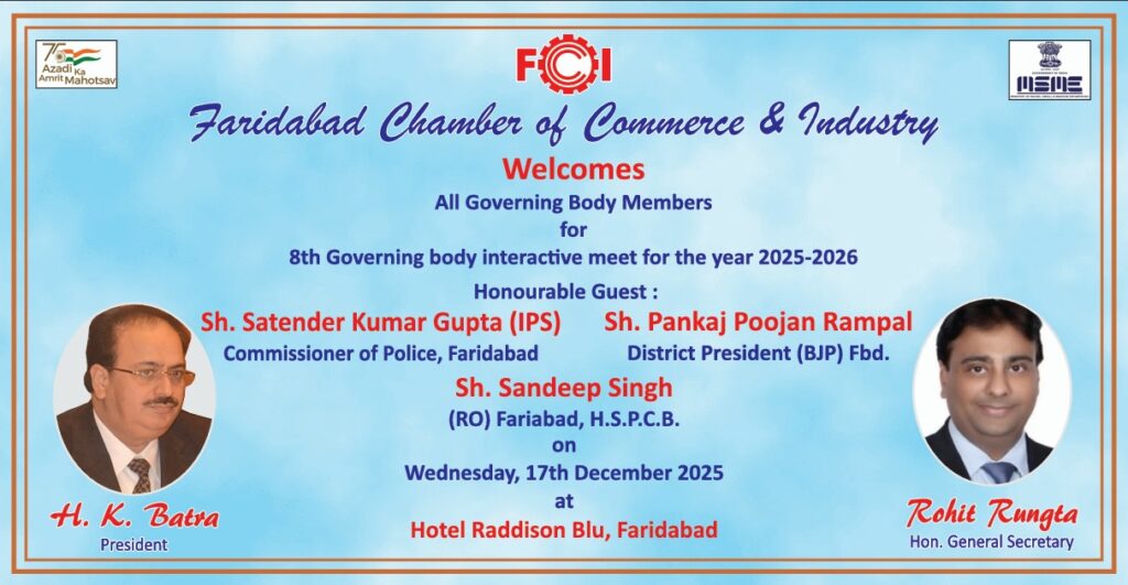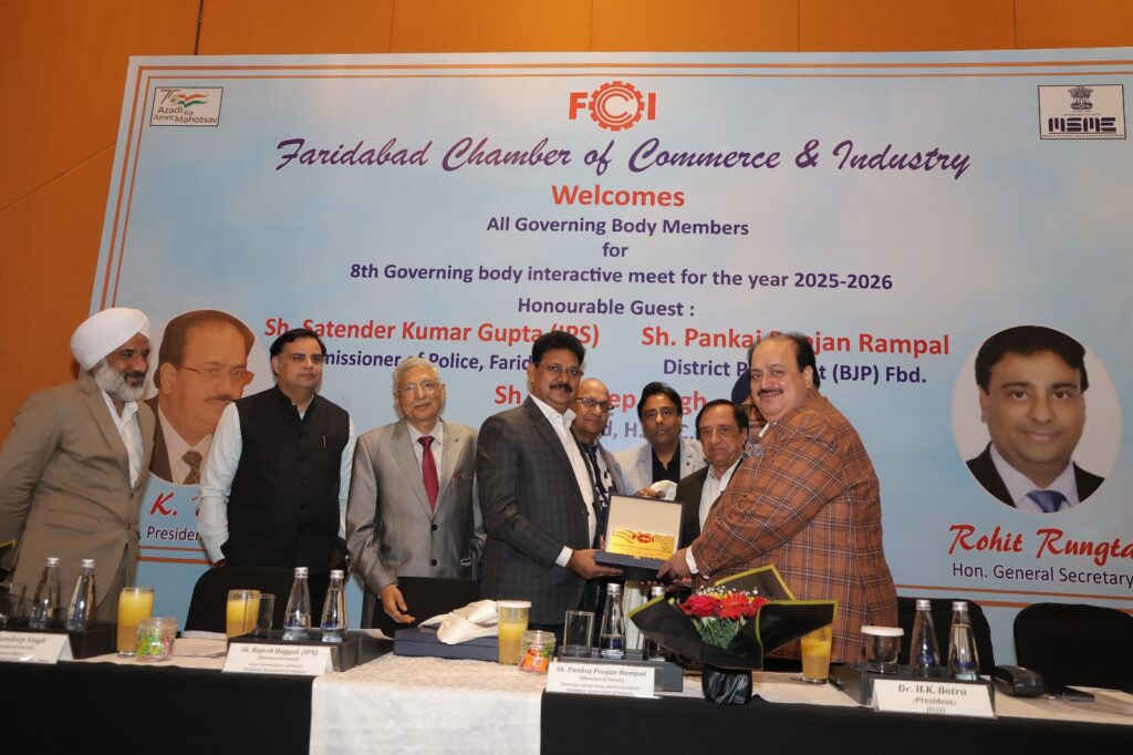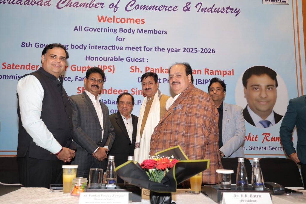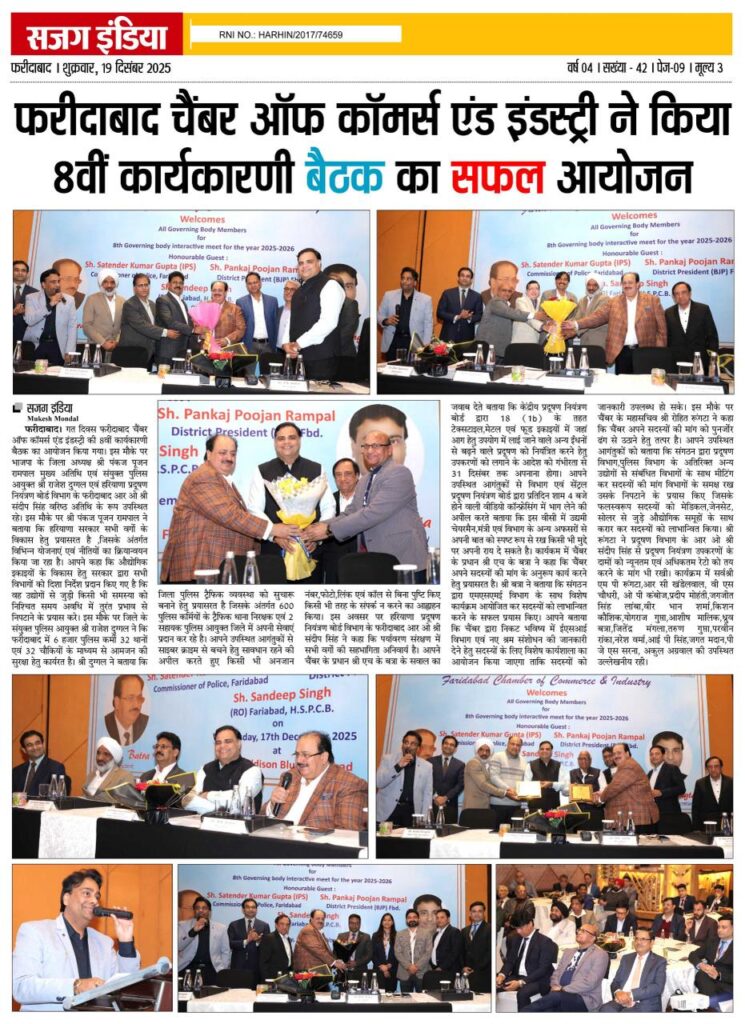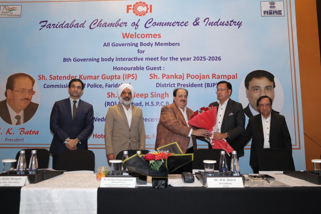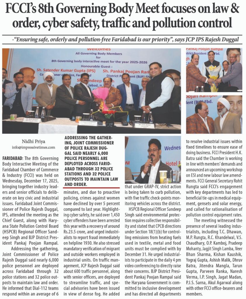 Read More FCCI’s 8th Governing Body Meet focuses on law & order, cyber safety, traffic and pollution control फरीदाबाद पुलिस सबसे तेज, 6.32 मिनट में पहुंच जाती है डायल 112 पीसीआर फरीदाबाद चैंबर ऑफ कॉमर्स एंड इंडस्ट्री की 8वीं कार्यकारिणी बैठक आयोजित